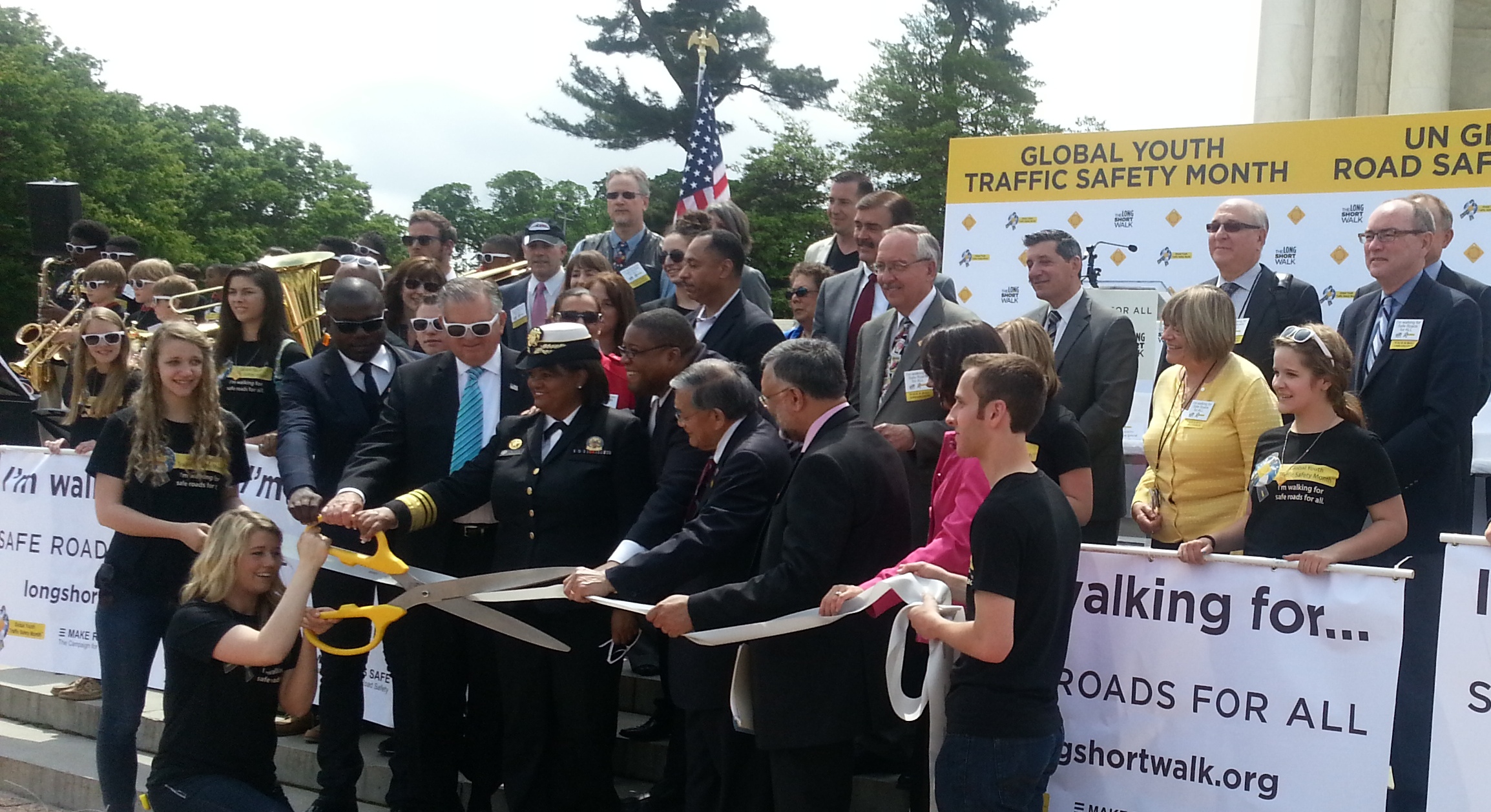 On May 8, ITE joined with National Organizations for Youth Safety (NOYS) and Make Roads Safe: The Campaign for Global Road Safety to kick off Global Road Safety Week and Global Youth Traffic Safety Month. A ribbon cutting event was held at the Jefferson Memorial in Washington DC and then attendees participated in the Long Short Walk and Roll, a worldwide walk for road safety initiated by the Zenani Mandela Campaign.